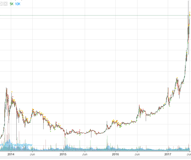 Новости, слухи и все в этом духе. Например в Японии хотят узаконить биткоин и в итоге спрос растет и цена соответственно. И таких новосте й и слухов полно было на которых рост и спрос рос.