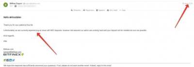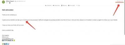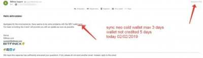 Bitfinex 5 сутки не зачисляет мой депозит NEO, ссылаясь на различные причины, срывая очередные сроки обещания зачисления. Нигде в официальных аккаунтах биржи bitfinex не говорится о их проблемах с начислениями на баланс. Официальные ответы службы поддержки напоминают отписки сроки обещаний не выдерживаются. Если в этом форуме есть представитель биржи, прошу официально объяснить ситуацию и дать конкретные сроки устранения. Такое поведение со стороны биржи bitfinex говорит о наплевательском отношении к клиентам и решении своих проблем за их счет.