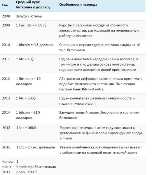 Криптовалюта bitcoin стала настоящим феномен последнего десятилетия. Она вызывает постоянный повышенный интерес пользователей интернет. История биткоина неразрывно связана с именем Сатоши Накамото, впервые сообщившим миру о создании новой денежной системы. Как появился биткоин В конце октября 2008г. на электронную почту подписчиков ресурса gmane.comp.encryption.general поступило сообщение от отправителя по имени Сатоши Накамото. В послании содержалось описание сути и свойств созданной криптовалюты под названием bitcoin. Абонентам разъяснялось, что новая виртуальная денежная единица надёжно защищена от мошеннических операций, не зависит ни от каких организаций, и предоставляет возможность анонимного её использования своим владельцам. Вся информация о новой криптовалюте была размещена также на bitcoin.org. Однако история биткоинов (bitcoins history), а, точнее, сказать, предпосылки для её создания были известны гораздо раньше. Ещё за 10 лет до того как появился биткоин, преимущества создания неконтролируемой криптовалюты описывал в своём романе Нил Таун Стивенсон. А исследователь Ник Сзабо вплоть до 2005 года трудился над созданием системы электронных денег Bitgold. Он утверждал, что виртуальная валюта не будет подвержена инфляции. Помимо этого, её невозможно будет подделать и украсть. Первые сделки 2009 считается годом, когда появился биткоин. В январе этого года было запущено впервые приложение bitcoin. Стартовый денежный блок в данной системе сгенерировал создатель биткоина Сатоши Накамото. Несколькими днями позже была совершена первая операция перевода криптовалюты bitcoin со счёта одного пользователя другому. Возникает естественный вопрос: сколько стоил биткоин когда он появился, и откуда появлялись эти денежные единицы? Оказывается, биткоины генерировали пользователи на компьютерах. Курс bitcoin в конце 2009 года колебался в диапазоне 700–1600 ед. за 1 доллар. Публиковался он на ресурсе NewLibertyStandard. Схема его вычисления была до безобразия примитивна. За основу брали среднюю мощность процессора компьютера, умножали её на цену электроэнергии в США и делили на количество bitcoin, сгенерированных создателем сайта. Интересно знать! Первой серьёзной сделкой, совершенной при помощи bitcoin, было приобретение пиццы. В мае 2010 года один из пользователей форума заявил, что готов оплатить 10 тыс. bitcoin за пиццу. На тот момент реальная стоимость пиццы составляла 25–30 долларов. Год 2011 ознаменовался появлением биржи MtGox, ставшей первой площадкой, на которой можно было обменять bitcoin на обычные деньги. Падения и взлёты биткоина Bitcoin история хранит немало фактов падений и взлётов курса криптовалюты. Проследить общую тенденцию и сделать выводы о динамике развития биткоина можно из таблицы. История биткоина: создание, становление и быстрый рост bitcoin (видео) Чем обеспечен биткоин? В отличие от обычных денежных средств bitcoin не подкреплён абсолютно никакими материальными ценностями. Ни банки, ни эмиссионный фонд не занимаются поддержкой курса криптовалюты. Как же тогда доверять этой виртуальной денежной единице, если у владельца полностью отсутствуют какие-либо финансовые гарантии? Дело в том, что тот, кто придумал криптовалюту, вовсе не собирался подкреплять её золотом или акциями. Эта платёжная система обладает совершенно другими свойствами. Ценообразование в ней полностью зависит от реал