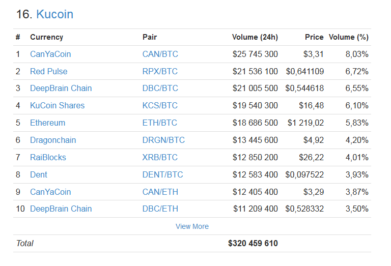 еще только начало 2018, а биржа уже ТОП-16! Объем торгов 320 миллионов, и это только начало. Kucoin уверенно занимает лидерство вместе с binance по новым листингам и росту монет после листинга.