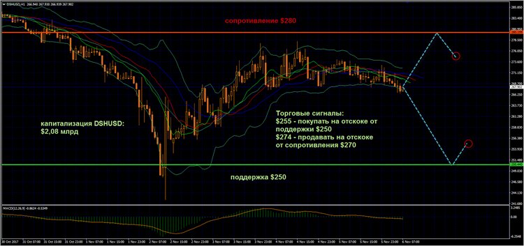 DSHUSD: В среду быки по Dash так и не сумели развить восходящую динамику предыдущего дня, из-за чего пара скорректировалась с недельных максимумов, так и не протестировав сопротивление $302.