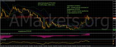BTCUSD: В четверг волатильность по Биткоину достигла $340 ($5635-$5975), а курс вырос на $166 до $5837. По ранее открытой нами позиции на покупку с $5750 плавающая прибыль составляет $169 на 1 лот. Alligator по-прежнему указывает на наличие бычьего импульса в паре BTCUSD, MACD выше нуля на средних объемах – сигнал на покупку. Достаточно прочный уровень поддержки $5700 позволяет рассчитывать на сохранение динамики выше данной отметки и скорый тест сопротивления $6177, на отскоке от которого возобновим продажи с $6050.