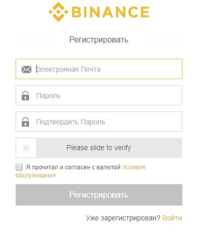 Регистрация binance