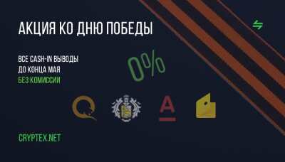 Ко Дню Победы мы подготовили приятную акцию. До конца мая все cash-in выводы с торговой платформы Cryptex.net будут производиться без комиссии.