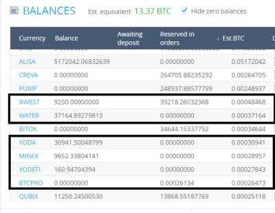 сидеть там в инвест так себе занятие... есть пантеон монет, которые даже за 1 сатоши не продашь... мертоворожденных самой биржей