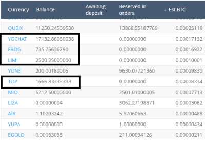 В своем публичном портфеле я продал 625195 BCN, это ~100$. На этих ~100$ я купил 10 шиткоинов на бирже Yobit.net. Еще не все ордера сработали, картинки на сейчас.