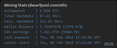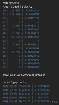 Всем доброго времени суток. Написал для себя, бота для наблюдения за своей видеокартой. Знакомые майнеры посмотрели и сказали, что довольно удобная вещь. Поэтому слегка масштабировал под сторонних пользователей и предлагаю Вам посмотреть, ознакомиться и возможно начать пользоваться. Что бот умеет? Присылать оповещения с компьютера по определенным событиям (например при нагреве или остывании видеокарты) Слушать пинг с фермы и в случае его отсутствия сразу сообщать Вам (в случае зависания фермы или дисконнекта) Собирать и выводить кое-какую информацию с майнинг пулов (пока их немного) И все это в 1-2 нажатия, очень удобно. Более подробную инструкцию по пользованию я расписал тут - http://ikebastuz.info/rigmonitorbot/howto Имя бота - @ikeRigMonitorBot Если у вас будут вопросы или предложения по внедрению какого-нибудь функционала - буду рад услышать.
