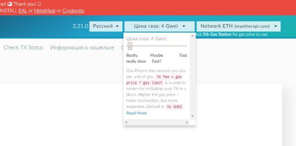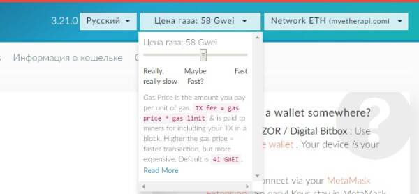 Да, кстати в других системах эфира такая же цена или больше. Например на холодном кошельке эфира вы платите даже больше сумму нежели в myetherwallet..