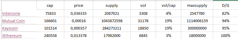 Проверяем каждую монету, слабаков без нормального листинга удаляем. В сухом остатке у меня всего две криптовалюты: Interzone и Kayicoin.