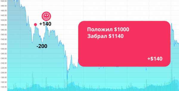 Итог: $1000 — положил, $1140 — забрал. +$140