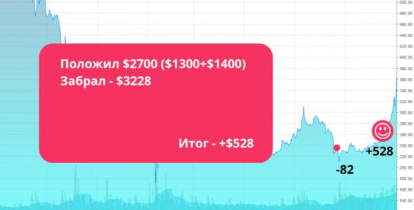 Я не заработал 100% прибыли, но и не потерял ничего. И это только благодаря тому, что в моменты когда курс опускался с 350 до 170 долларов, я рисковал еще больше и покупал новую пачку биктоинов. Вкладывая все новые и новые деньги. Это очень сложно психологически. И, конечно, требует много свободных средств.