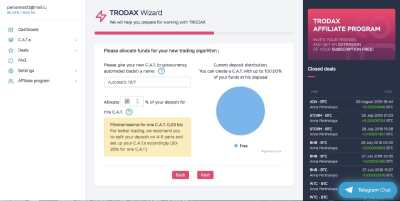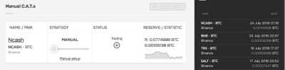 Сегодня опишем, как работает наш Сервис! После регистрации вы попадаете на наш Визард, который поможет Вам запустить нашу систему. Визард задаст вам несколько вопросов: Вы уже приобрели криптовалюту? ДА НЕТ У Вас уже есть аккаунт на торговой бирже? ДА НЕТ Вы знаете как создать ключи API? ДА НЕТ Если Вы что-то не понимаете, выбирайте НЕТ и сможете просмотреть обучающий ролик. Далее вы попадает в раздел подключения к Бирже. Здесь все очень просто - добавляете API ключи от вашего аккаунта на бирже! Мы рекомендуем Вам создать отдельный аккаунт на бирже для работы с Trodax.cat, что позволит Вам определить эффективность торгового алгоритма без ошибок. Далее вы выбираете Ручной или Автоматический C.A.T. вы хотите запустить Если Вы выбираете ручной, то попадаете на выбор валютной пары (есть рекомендации). Если Вы выбрали автоматический вариант, то сразу переходите к резерву! На работу каждого C.A.T. выделяется свой резерв! Для лучшей торговли резервируйте на один C.A.T. не более 20-25% депозита. Минимальный резерв в пересчете на BTC должен быть не менее 0,03 btc , а лучше больше! После выбора резерва , Вам необходимо выбрать одну из 4 подготовленных нами стратегий! Когда рынок медвежий - Мы рекомендуем выбирать стратегию CAREFUL по мере оптимизма на рынке, можно выбирать более рисковые стратегии. И конечно Вы всегда можете выбрать свои настройки - в разделе "настроить вручную" Поздравляю, вы все настроили! Вы можете сразу запустить еще одного или нескольких C.A.T