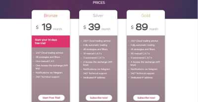 Как сохранить время, заработать денег и не рисковать в процессе? Мы знаем, как. Чтобы зарабатывать деньги и не тратить свое свободное время на изучение рынка, стратегия и оценку рисков, Вам следует понять одну простую вещь: трейдеры чаще всего теряют деньги из-за своих эмоций, заставляющих людей принимать плохие решения. Если Вам не хочется терять деньги, Вам нужно верная стратегия и ее реализация без эмоций. Торговать как робот. Или, скажем, бот. Trodax.com– это лидер рынка в выборе стратегий и самые умные боты, основанные на гибридном интеллекте. Вам не нужны никакие специальные технические навыки чтобы получать прибыль с нашим сервисом. Это так же просто, как использовать Вконтакте. Просто установите коэффициент риска/заработка и предоставьте нам сделать все остальное. Вынебудететерятьвремя. Вынебудететерятьденегиз-заэмоциональныхрешений. Вы будете зарабатывать быстрее и намного безопаснее, чем остальные трейдеры. Помимо этого, мы строим наш бизнес так, чтобы он был для Вас доступен. Мы хотим взаимовыгодных отношений и потому у нас есть тарифы для депозитов любого размера. 3 разных опции от $19 до $89: Бронза, Серебро и Золото. Тарифы растут вместе с Вашими амбициями. Все они гарантируют Вам все необходимое для успешного трейдинга и снимают головную боль на свободное время и уверенность в правильности решений на бирже. Вы можете положиться на Trodax.com, зная, что не проиграете и будете зарабатывать быстрее, чем раньше! Торгуйте с умом. Торгуйте с Trodax.com.