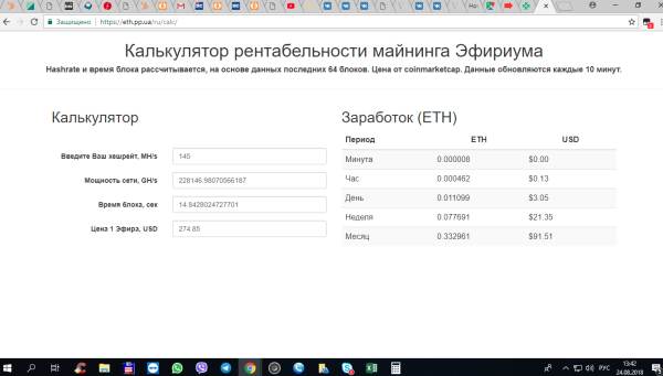Это по нынешнему курсу. Но и опято то ки если же Эфириум будет стоить 1000$ то и заработок будет увеличен в 3 раза.