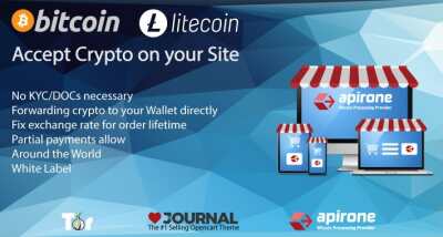 Крипто-плагин для OpenСart 3 обновился. Принимайте Litecoin и Bitcoin с пересылкой в ваш кошелек, без проверок, регистраций и ключей. Теперь курс конвертации фиксируется на период жизни заказа, а оплата заказа возможна частями. Плагин стандарта White Label, работает полностью на стороне вашего сайта. Дружелюбен к одностраничным чекаутам и совместим с самой популярной графической темой Journal 3. Есть поддержка адресов SegWit BTC и LTC, а также сети TOR network. https://www.opencart.com/index.php?route=marketplace/extension/info&extension_id=34039 https://apirone.com/integrations/opencart-3