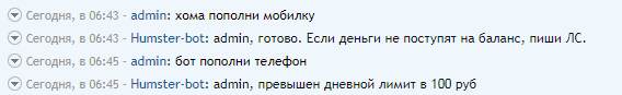 В дальнейшем, когда бот форума будет привязан а Телеграму, можно будет пополнять баланс из Телеграма с указанием суммы и номера. Например, командой, "бот, пополни телефон 79110000000 на 50 рублей".