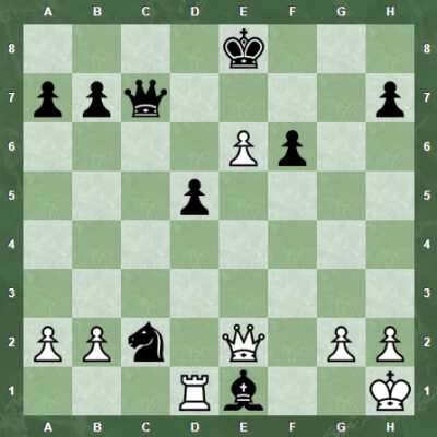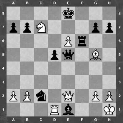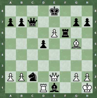 не, после фc5 лd5. т.е. еще и пешку забрали и дальше атакуем. забирать ладью ферзем нельзя, т.к. вилка конем. черные ничего не могут, кроме как, оттянуть свою гибель. там просто разгром это в какой момент? там черный слон разрывается - белый конь готов быстро прийти на помощь. перекрытия не получится, а даже если предположить его гипотетически и даже убрать с поля коня, то ладья в последний момент заберет слона, черный король будет вынужден забирать ладью, и тогда белый король подходит к пешке, в итоге заблочит ее, встав на d1, и белые пешки пошли вперед. позиция, на самом деле, на столько безнадежна, что белые даже без всех своих четырех пешек выигрывают) ладья с конем в итоге все сожрут