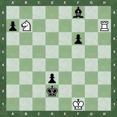 Вот позиция с конем: 8/pN5p/4kp2/3p4/1b6/8/PPn3PP/2R4K w KQkq - 0 1 Код белых. А вариант можешь сам погонять, вот так позиция: 8/pN5p/5p2/8/1b6/3p4/PP1k2PP/2R2K2 w KQkq - 0 1 Ну уходим на седьмую и? Король е3, чем шаханешь? Подожди, а я не говорю, что пешка пройдет - максимум ничья конечно.