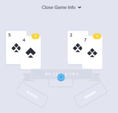 Выиграйте две ничьи в баккара, одна с ничьей на номер 2, а другая на 0.