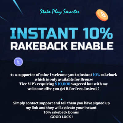 https://stake.com/?c=luckychance Тем кто зарегистрируется по моей ссылке !!! Пишете в саппорт и вам сразу подключают 10% Рэйкбэк который подключается только если вы сделали оборот на аккаунте 10,000 $