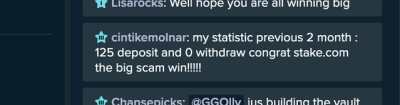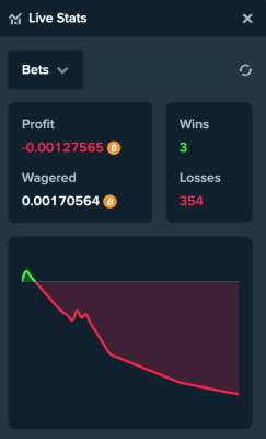 Ну что сказать думал надо сделать перерыв, но видимо раздав ютуберам и стримерам выигрыши по 250к $ и даже по 1 миллионы, простых игроков решили обирать до нитки. От такого скотства сегодня всиханул и в английском чате написал что это полнейший скам, нет никакой игры, а тупо идет кража денег, если вам поставили шанс выигрыша 1% , то вы хоть миллион долларов закинете и будите играть месяц то просто каждый день ваш баланс будет таить и таить . Все онлайн казино усираются про Провайлэбол фэир так называемую Проверяемую честность, но если админ заходит в сайт с правами админа и может регулировать ваш шанс выигрыша, то вся эта проверяемая честность полное дерьмо . Ну и как видно народ тоже не доволен, забываю делать скрины когда проскакивают такие вот комментарии в чате, а они бывают частенько . Ну и сами посмотрите как можно выиграть если за 354 ставки я выиграл только 3 и ни одна из трех даже не была х5, это просто обворовывание !