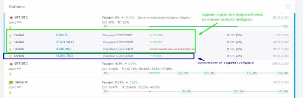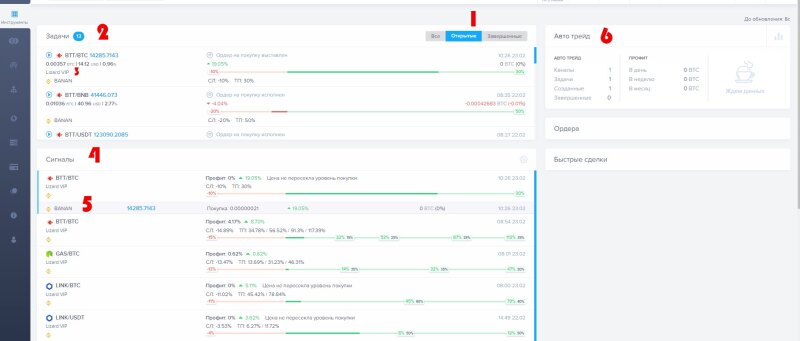 Как торговать на автопилоте вместе с trade-mate! Привет коллеги, сегодня хочу детально разобрать большое обновление моей любимой платформы для торговли криптой - trade-mate.io А именно сегодня рассмотрим - "Авто-трейд" с добавленным в него функционалом по следованию за сигналами успешных трейдеров. Авто-трейд - это инструмент который был создан для людей у которых нет 6-8 (а то и больше) часов в день для постоянной ручной торговли или им не хватает знаний и навыков для технического или фундаментального анализа рынка, но им интересна крипто валюта и есть желание на ней зарабатывать. Переходим во вкладку Авто-трейд и выбираем себе трейдера для авто следования по параметрам которые вас устраивают. Сейчас более детально разберём интерфейс вкладки Авто-трейд: Прежде всего !!Важно помнить что каналы с аватарками и таким значком возле аватарки это каналы живых трейдеров ведущих торговлю на сервисе. Они выставляют и ведут сигналы, меняют стопы, усредняются, ставят ТП, могут сделать паник селл для сигнала и т.д. то есть полностью управляют сигналом который публикуют. боты Каналы без аватарок и со значком молнии это боты, которые создают сигналы в автоматическом режиме - для них вы можете указать значения ТП и СЛ при включении авто следования. Но после создания сигнал не будет "редактироваться" в зависимости от ситуации на рынке. (не смотрите на статистику ботов на данный момент, пусть вас не смущает эйфоричные +1200%, это статистика в долгосрок, с момента открытия платформы, добиться такой результативности на промежутке пару месяцев не реально) Рекомендую присмотреться к живым трейдерам а не ботам. Подробнее разберём авто-трейд для каналов трейдеров на примере канала Lizard VIP 1. Пиктограмма, обозначающая что вы следуете за реальным трейдером (наведя на нее курсор можно прочитать всплывающую подсказку) 2. Рейтинг и аватар трейдера У каждого канала есть рейтинг, он складывается из таких показателей как: Профит, Скорость закрытия сигналов, Средний профит, % закрытия сделок, % успешного закрытии сделок Каждый из параметров имеет свой вес. Самое большое влияние на рейтинг оказывает общий профит канала, а так же средний профит. Прочие параметры, такие как среднее время жизни сигнала и другие - имеют меньший вес. Для расчета рейтинга канала эти параметры сравниваются с параметрами других каналов. 3. Здесь указаны пары к которым торгует трейдер и суммы которые желательно выделять для торгов у этого трейдера. Так как у всех пользователей различные депозиты разработчики резонно решили, что логично будет создавать сигналы в % соотношении. Например, минимальный депозит подписки на канал 1 BTC, трейдер создает сигнал на покупку в размере 10%, если пользователь подписан на трейдера на 3 BTC, то у него будет создана задача на 0.3 BTC. 4. Комиссия которую берёт трейдер за сделки, которые приносят вам прибыль. На этом пункте можно остановиться по подробнее так как разработчики придумали интересную особенность: Расчёт комиссий происходит один раз в 14 дней, на это время сумма комиссионных замораживается на вашем счету. Если трейдер торгует в плюс, и вы зарабатываете, то вы платите комиссию с плюсовых сделок. Если трейдер торгует в минус, и вы терпите убытки то комиссия трейдеру уходит в минус и ниже нуля. Вы ему ничего не платите и ему приходится восстанавливать положительные значения 