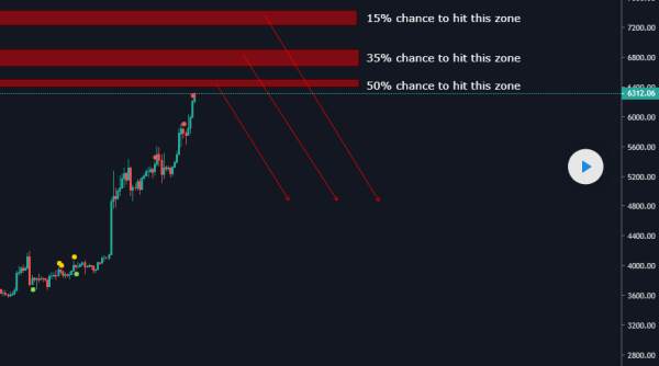Кто-то пытается предсказать вероятность. Может в этом и есть смысл, учитывая, что в зоне 6000-7000 было сильное накопление. И если остались такие, у кого не дрогнули нервы, возможно, они продадут после столь продолжительного буллрана. Уровень 6500-6700 ключевой.
