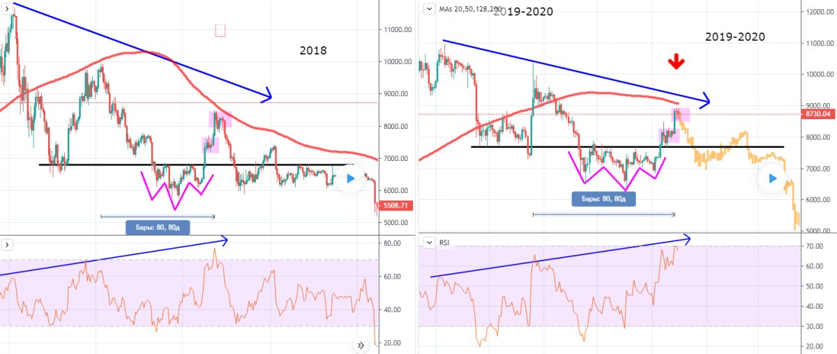 8 января 2020 года была сформирована бычья ловушка: участники рынка решили прокатиться по экспоненте, тем самым и сформирован данный откат, исход сие действия: многие влетели в долгую позицию или пролетели с стопами.