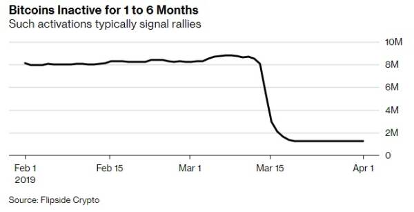 Сообщается, что если обычно количество кошельков Биткоина, на которых не было признаков активности в течение от 1 до 6 месяцев, составляет около 50%, то с 15 марта среднее количество таких кошельков снизилось всего до 10%.