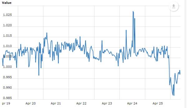 А курс восстановился возможно потому, что сейчас клиенты биржи на стеблкоин покупают крипту.