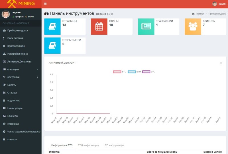 Скрипт облачного майнинга! Здравствуйте,предлогаем вашему вниманию скрипт облачного майнинга.Мы команда которая занимаемся разработкой различных проектов на криптовалюте.Продаем готовые проекты ,а так же занимаемся разработкой под заказ. Что есть в данном скрипте: 1) Очень удобная "Админ панель". Функции админ панели: - Приборная доска - Блок питания - Криптовалюты - Настройки плана - Активные Депозиты - операции: Все транзакции депозиты История вывода Запросы на снятие средств Всего комиссий Пользователь Кошелек Кредит Пользователь кошелек дебет Интерес бонус Запросы на утверждение - настройки: Настройки компании Шаблоны электронной почты Способ оплаты Настройки оплаты филиал выплата - Билеты - Отзывы - подписчик - Наши услуги - Баннеры - страницы - Часто задаваемые вопросы - клиенты Настройки компании Шаблоны электронной почты Способ оплаты Настройки оплаты филиал выплата Скрины некоторых функций предоставлю под описанием.(Все чем можно было упростить Администрирование проекта все есть!). 2.Панель самого пользователя и функции: Приборная доска -Инвестиционный план -депозиты -Сделать вывод -Сделка -История депозитов -Заработанные проценты -Комиссионные -бонус -Запросы на снятие средств -История вывода -Кошелек Кредит -Кошелек дебет -Переходов -Баннеры -Билеты Так же настройки пользователя туда входят: настройки кошельков криптовалют на которые пользователь хочет выводить средства,так же есть Два FA. Так же доход отображаеться графиками. На самом сайте стоит хороший дизайн под все мобильные версии. Так же есть возможность установить мобильное приложение ios и android естественно немного нужно доплатить. Стоимость данного скрипта всего 150$ без доработок,стоимость доработок зависит от того ,что вы хотите добавить и изменить. Так же при покупке скрипта за 180$ адаптивный дизайн под вас!!! На запрос отвечаем быстро в течении 10 минут. Пишем на почту: cryptoskript22@gmail.com Есть возможность получить скрипт бесплатно,для этого нужно привести 2 покупателя.