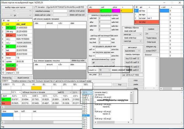 В данной статье мы с вами рассмотрим бесплатного торгового бота для биржи EXMO, настроим его и запустим для торговли на этой бирже. Бот бесплатный и работает с любой криптопарой на бирже EXMO. Данный бот является аналогом такого хорошо зарекомендовавшего себя бота, как Yobit Bot и его модификации для биржи Yobit. Отличительной особенностью бота является - простота. интуитивно понятный интерфейс, возможность торговать не всем депозитом, а только его частью, так же есть возможность запуска 7 - 10 копий бота одновременно, то есть, практически все криптопары, которые есть на бирже EXMO. Бот торгует автоматически без вашего участия 24 часа в сутки и приносит вам прибыль. Самое главное - не жадничать и выставлять значения на покупку и на продажу не заоблачные.... Ключи апи создаём для просмотра баланска и трейдинга. А не для Вывода! - Добавлена возможность использования прокси. - Решена проблема в стратегии (ПРОФИТ 200), также изменен процент продажи, с 0.006 на 0.005. - Исправлена проблема с ошибкой ("Нет интернет подключения") - Добавлены все валютные пары! - Добавлена возможность торговать определенным количеством валюты! - Отображается баланс, по всем кошелькам. - Добавлены настройки, для каждой валютной пары. Внимание! Для нормальной работы бота. Мин. депозит на криптовалютных парах с рублями должен быть не менее 1450 руб (У вас на счёте биржи) Мин. депозит на криптовалютных парах с BTC должен быть не менее 0,00250000 сат (У вас на кошельке биржи) P.S можно конечно и меньше, но лучше не рисковать. Так же, рекомендую выставлять параметры для торговли не особо высокие "Не жадничайте!" и будет вам удача и стабильный ежедневный доход. Более подробно и пошагово по всем настройкам и описанию бота вы можете посмотреть в видео, которое представлено ниже. Все вопросы по настройкам бота вы можете задавать в комментариях к этой статье. Я с удовольствием отвечу вам на них. Удачной Вам торговли и хорошего профита! Скачать:Simple Exmo Bot