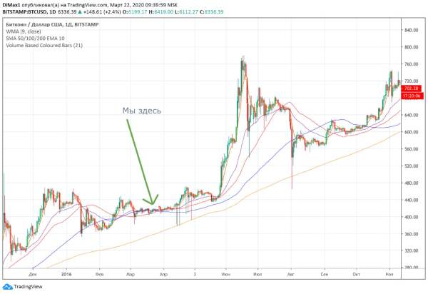 Разные прогнозы и сценарии Соучредитель обучающего хаба YellowBlock написал у себя на странице в Twitter, что недавний рост биткоина не будет долго продолжаться, поскольку сильное давление со стороны продавцов криптовалют и массовое желание выйти в краткосрочной перспективе на прибыль спровоцируют внезапное падение цены биткоина. ---------------- TradingDrift Для покупок нужно пробивать зону сопротивления и при откате к границе треугольника или свежей поддержке можно покупать. Для продолжения похода похода вниз нужно пробивать экстремум - 4381. ----------------- Отрицательные ставки по депозитам в США в попытке стабилизировать систему — «мегабычий» сигнал для биткоина, уверен сооснователь компаний Gold Bullion International и 10T Holdings Дэн Тапиеро. ----------------- BSOD Trade Новый виток роста, происходящий на оптимистичных настроениях игроков в преддверии майского халвинга, не мог длиться вечно: несмотря на ложный пробой, продавец смог удержать уровень 6900 и отправить цену на коррекцию. Весь интерес текущей ситуации заключается в том, что её развязка станет основой дальнейшего среднесрочного движения рынка. Если покупателю удастся удержать поддержку 6115, то мы увидим повторный заход на 7000, который ещё сильнее подстегнёт оптимизм трейдеров в сторону роста цифрового золота перед халвингом. Иначе - цена рискует провалиться на ретест круглых 5000, после которого покупатель перейдёт к ещё более осторожной тактике. В данный момент цена закрепилась над уровнем 6000, а значит шансы на рост по-прежнему присутствуют. ---------------- Цена биткоина следует паттерну BARR (Bump and Run Reversal), так же как и перед началом ралли в апреле прошлого года. На это обратило внимание издание NewsBTC. В середине апреля 2019 года биткоин-трейдер под ником b.biddles написал, что биткоин сформировал дно BARR «как по учебнику», и предсказал старт бычьего рынка. Движение цены биткоина с 7 марта этого года имеет все признаки формирования аналогичного дна BARR: вертикальное падение, консолидация, выход за линию тренда и возврат к ней для тестирования уровня поддержки. ---------------- CryptoWolfSignal "Ласт Кисс", или Последний Поцелуй - ситуация, при которой цена после мощного пробоя трендовой линии возвращается к ней. При таком возвращении возможны две ситуции: пробой и отскок. Отскок и возобновление движения прошлого пробоя и есть "Ласт Кисс". На самом деле, для криптовалюты эта ситуация достаточно тревожная: 20 марта 2020 г. мы не пробили трендовую, цена не смогла закрепиться выше нее на дневном графике и оттолкнулась длинным хвостом. Поэтому сейчас в приоритете короткие позиции (шорт). Однако та самая трендовая дает один четкий сигнал: роста не будет, пока она не пробита полноценно. И уровень для такого пробоя на текущий момент - это 6500$. Если цена будет консолидироваться в боковике, сдвигаясь вправо, то значения трендовой из-за ее наклона также будут всё ниже, и для возобновления роста нам нужно будет пробить всё более низкий уровень. Однако в течение двух ближайших дней ключевым уровнем останется именно 6500$. И пока не похоже, что у цены есть силы пойти на новый полноценный штурм. ---------------- Мы образовали клин, но он был пробитый но на мое мнение он пробитый временно, это только вопрос времени. Так вот после неудачного тест уровня поддержки на 7800-8000 мы ушли в низ, но как мы видим не надолго уже был пробит уровень 6600, также мы сделали тест внутреннего канала линий с