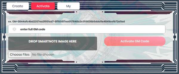 Для активации GM достаточно отсканировать QR-код, изображенный на купюре или вставить изображение в раздел GM - “Активировать Smartnote”.
