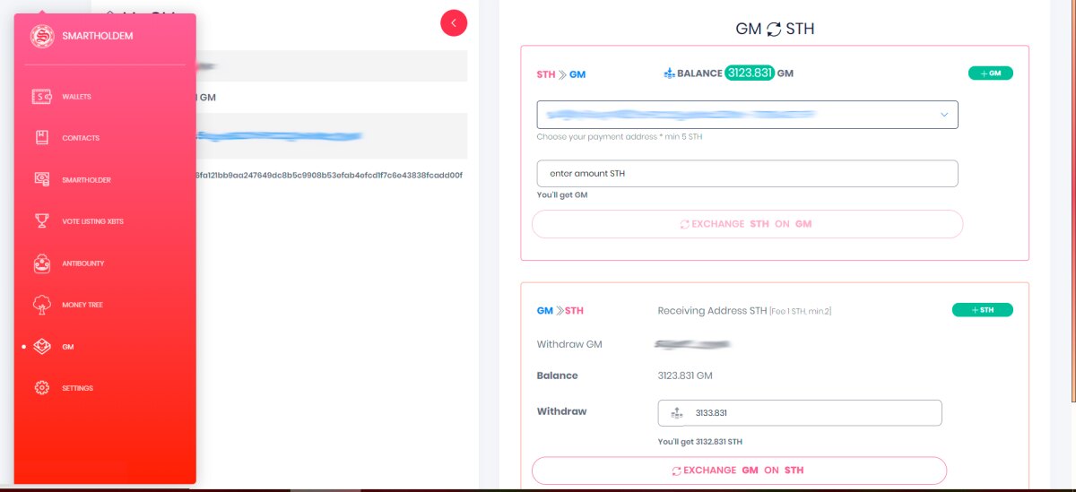 Вы можете обменять GM на STH или STH на GM в кошельке Smartholdem в разделе GM.