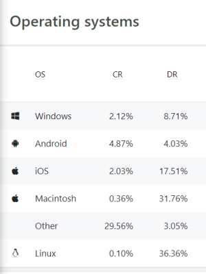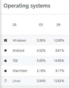 Сегодня мы хотим поделиться с вами CR и DR статистикой различных операционных систем за прошедший месяц.