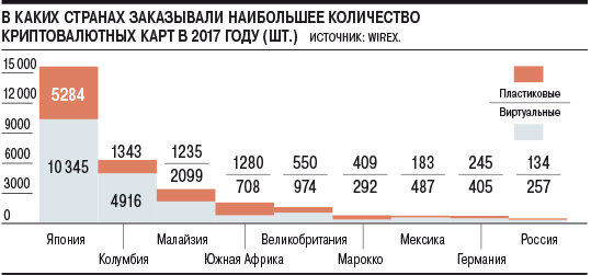 В апреле 2017 года биткоин в Японии получил статус платежного средства наравне с японской иеной. Это послужило толчком для взрывного роста количества пользователей сервисов, связанных с оборотом криптовалют, во всем мире, отмечает господин Лазаричев. Так, по его словам, именно с апреля 2017 года значительно выросли темпы роста заказов криптовалютных карт Wirex. В Японии, например, количество заказов в 2017 году превысило 15,62 тыс., в Колумбии — 6,25 тыс., в Малайзии — 3,33 тыс. При этом российский рынок в компании считают очень перспективным. Однако, полагает господин Смеркис, при более массовом использовании криптовалют в офлайне в этот сегмент придут традиционные банковские игроки, но уже скорее не в виде партнеров, а в виде конкурентов. Тогда, добавляет он, Wirex будет очень сложно вести бизнес в качестве независимого игрока.