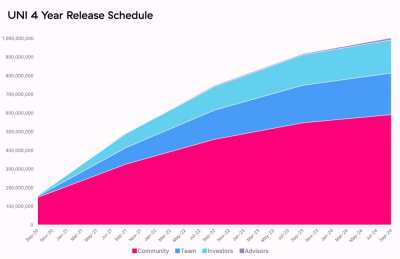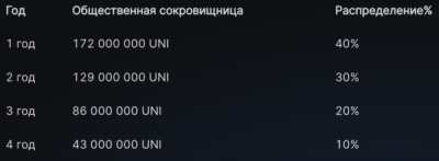 Эмиссия UNI: 1 миллиард UNI (станет доступен в течении 4 лет).