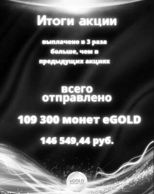 Сегодня ,11 июля , закончился приём заявок на участие в акциях: 1) Всех кто сделал репост в В контакте на пост https://vk.com/egold_pro?w=wall-203167673_609 и продержал его в закрепе до 10 июля (сегодня проверяется), получит 100 монет. 2) Акция "Я создал видео о eGOLD". Подробнее по ссылке: https://docs.google.com/forms/d/e/1FAIpQLSfZwEaTzsDrO.. 3) Акция "Я рассказал о eGOLD". Подробнее по ссылке: https://docs.google.com/forms/d/e/1FAIpQLScJBqSUXmgBO.. Подведение итогов состоится 17 июля.