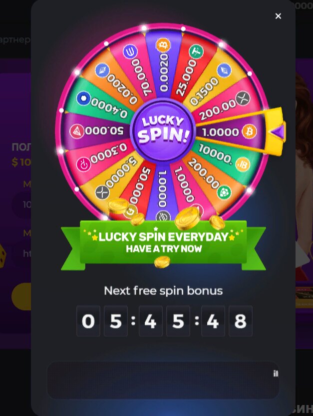 Казино закрыто на территории России вход только через ВПН или через зеркало. А вот выиграть 1 биткоин на колесе не реально это только пиар, если выпадает 1 биткоин то дают возможность прокрутить колесо еще раз. А само казино как все другие есть плюсы но есть и минусы. одно скажу вывод приходит быстро и четко