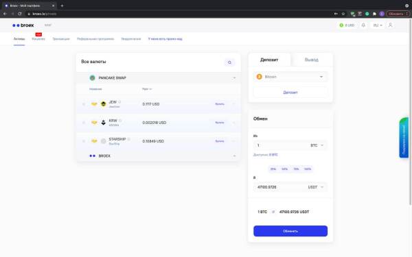 Криптовалютная платформа для инвестирования Broex создана в 2020 году. Компания зарегистрирована в Эстонии и регулируется местными надзорными органами. Площадка предлагает возможность покупки биткоина, ряда альткоинов, а также помощь в создании собственного инвестиционного портфеля. В этом обзоре рассматривается как сделать первые шаги на площадке и какой функционал предлагает Броекс. Управляющей компанией платформы является Husky Fintech OU, расположенная по адресу Harju maakond, Tallinn, Haabersti linnaosa, Meistri tn 16-401, 13517 (регистрационный номер 14927539). Лицензия в Эстонии получена на предоставление услуг по обмену виртуальной валюты на фиатные деньги, а также на предоставление электронного кошелька (номер лицензии FVT000246). Регистрация Одним из преимуществ работы с Broex.io является простая процедура регистрации. Для создания аккаунта пользователю необходимо указать адрес электронной почты и создать пароль. При наличии промокода, его можно указать на этапе регистрации для получения дополнительных преимуществ. После регистрации пользователь подтверждает email и попадает в личный кабинет. Перед тем, как воспользоваться основными функциями, необходимо пройти верификацию аккаунта с предоставлением копий документов, подтверждающих личность в соответствии с требованиями политик AML и KYC, а также для безопасности самого пользователя и его средств. Покупка криптовалюты и обмен Биржа отличается достаточно простым интерфейсом, что позволяет начать работать с ней как опытным, так и начинающим крипто энтузиастам, и инвесторам. Здесь можно совершить быстрые сделки по покупке и продаже криптовалюты. Для этого необходимо пополнить кошелек внутри платформы. Для внесения средств на депозит используются банковские карты VISA/MasterCard. Броекс сотрудничает с системой МИР, что существенно расширяет географию платежей. На главном экране в личном кабинете пользователи могут купить или продать криптовалюты, сделать депозит и обменять токены по установленному курсу (меняется в зависимости от рыночной ситуации). Для покупки токена, необходимо выбрать его в основном меню и нажать на «Купить». Далее, откроется поле, в котором можно выбрать объем совершаемой сделки и рассчитать общую сумму транзакции. Криптоподписка Одной из ключевых функций платформы Broex.io, отличающей ее от многих конкурентов является наличие крипто подписки. С ее помощью каждый может получить доступ к токенам за несколько кликов. Этот способ позволяет в автоматическом режиме создать собственный портфель. На сайте Броекс предлагается несколько вариантов стратегий. Преимущества подписки заключаются в том, что любой инвестор может определять процент своих средств, который будет направляться на покупку криптоактивов в соответствии с выбранной подпиской. Еще один плюс в том, что для создания собственного портфеля не обязательно разбираться в технологии блокчейн и инвестициях, а также иметь предварительный опыт торговли на криптовалютных биржах. Как начать работать с подпиской? Для этого необходимо пройти регистрацию на сервисе и привязать банковскую карту VISA или MasterCard к торговому счету. Затем, инвестор подбирает подходящую стратегию и определяется с размером инвестиций, а также датой, в которую с карточки будет производиться списание средств для покупки криптоактивов. Виды стратегий При работе по по
