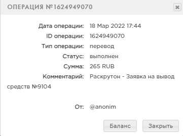 Здравствуйте! Предлагаю вашему вниманию новый букс Раскрутон! Раскрутон - это качественный, активноразвивающийся букс на уникальном скрипте. Нужны рефералы?! Не проблема! С помощью сервиса Раскрутон вы сможете привлеч десятки и даже сотни рефеалов в считанные дни! Ссылка: https://raskruton.ru?ref=artmaks24 - помогаю развиться на проекте. Активным рекламодателям и исполнителям выдаю рефбэк! ➡️ Кошелек Payeer: https://payeer.com/0543 - быстрый ввод/вывод средств Возможности для заработка: На своём сайте На просмотре сайтов На коротких ссылках Выполнять задания Задания ВКОНТАКТЕ Задания ЮТУБ Обмен визитами 1:1 Бонус Возможности для рекламодателя: Контекстная реклама за клики Банерная реклама за клики Посетители на сайт Реклама в коротких ссылках Создать задание Создать задание в ВКОНТАКТЕ Создать задание в ЮТУБ Обмен визитами 1:1 Реферальная программа: Процент отчисления от заработка: 20% / 10% / 5% Процент отчисления от пополнения: 7%