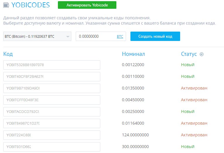 Yobit-код - это код пополнения баланса на криптовалютной бирже Yobit.net. Соответственно, вы можете создать код на нужную сумму в нужной криптовалюте и передать его другому пользователю биржи. Такой способ передачи крипты хорош скоростью и отсутствием комиссии за перевод. Если есть опасения, что yobit-код при передаче будет скомпрометирован, пользуйтесь сервисами секретных заметок.