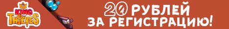 Игра с выводом денег King of Thieves (KoT) Имея воров вы можете легко получать камни (их будут воровать воры). Чем больше у вас воров, тем больше у будет камней. Теперь мой друг ты знаешь больше, но самое главное впереди. Время обмена, мы же здесь для того что бы заработать. 20 рублей за регистрацию 1 рубль за реферала 10% реферальных на вывод 2 вида бонуса чат вывод: без вложений Ознакомится