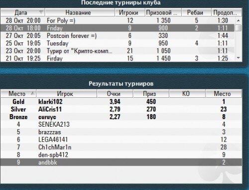 Результаты турниров от 28 октября : Призовые всем выплачены : Напоминаю ,что сегодня в 20 00 по Мск,состоится покерный фриролл от "Крипто-Компас"