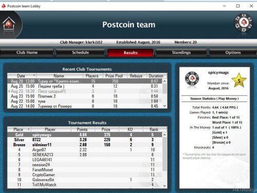 Сегодня в 20 00 по Мск , турнир от покерного клуба "PostcoinTeam" и команды "Крипто-Компас" Призовой фонд 10 000 ! Не забудь отметится в этой теме : http://postcoin.pw/viewtopic.php?f=19&t=63 Кому не хватает фишек для регистрации ,пополняем их бесплатно! Не знаешь как? Смотри сюда ! Изображение удалено Изображение удалено Изображение удалено