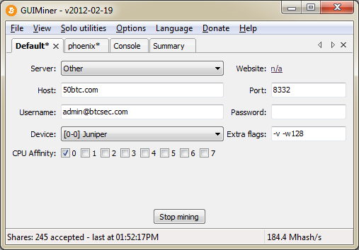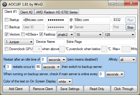 на btcsec давно не обновлялся софт... phonenix и guiminer вообще не подойдут, так как для майнинга биткоинов на видеокарте, а при текущей сложности это даже не окупит электричества которое потребляют видеокарты. + они не поддерживают stratum.... Лучше использовать ссылки на ресурсы авторов софта(там всегда можно найти последние версии программ): для майнинга биткоинов на асиках для майнинга scrypt на видеокартах для майнинга scrypt на MacOS Скрытое содержимое: **Скрытое содержимое: Для просмотра Вам необходимо минимум 1 сообщений на форуме.**