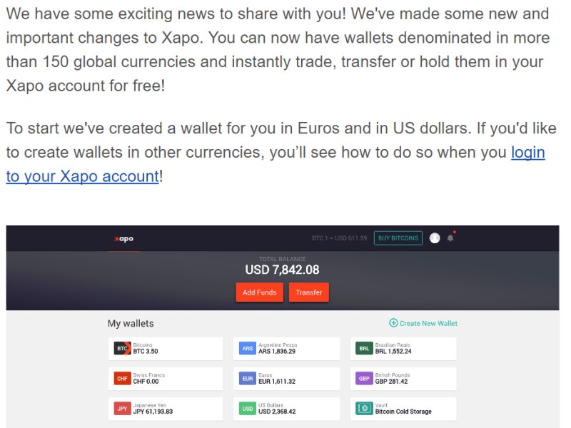 1. Команда биткоин-кошелька XAPO без лишнего шума добавила возможность создания дополнительных кошельков в более чем 150 национальных валютах.