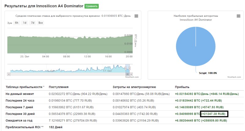 Ну смотри, по расчётам, если брать Доминатора за свет всего 1700 будет уходить, по сути и мощность 1 Квт всего, а у компа больше вентиляторов/компонентов. Выгодней всё-равно подешевле асики взять, на Х11 вроде много монет майнится.