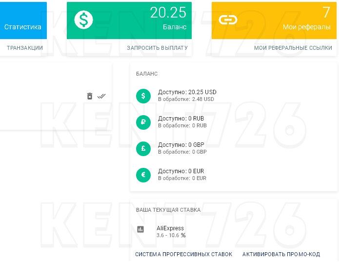 В кроме того в разделе " Инструменты " сможете делать реф. ссылки на товары и тоже зарабатывать.